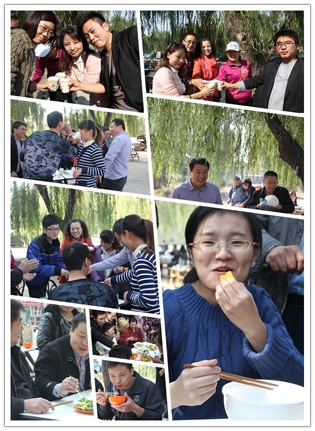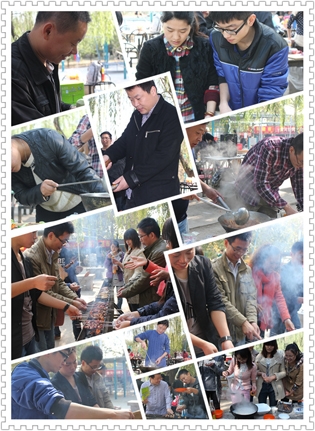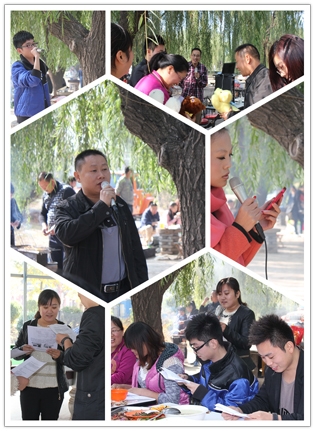 这边美食还在回味中,那边的节目表演已经开场了,销售一部超越组的帅小伙云卿一亮相就震撼全场,杨宗纬的《洋葱》模仿的象模象样。歌声荡漾,婉转飞扬,美食正在继续中,厨艺比赛一结束,时钟已嗒嗒地跑到了中午11:00整,大规模的团队宴席就正式开始啦。小组成员们马不停蹄,烧烤,爆炒,凉调,拼盘,个个都使出拿手绝活,大有一种不把现场“热翻天就不罢休“的势头,除夕年夜饭的感觉尽然给烘托了出来,空气里满是让人味蕾开放的各色香味儿。上菜了,上菜了,一道道精致的菜肴象一件件精美的艺术品, 成员们个个大快朵颐,觥筹交错,美食,歌声,小品,欢笑,各种逗趣儿,这温馨的现场时光,成员们个个都忘记了疲倦,忘记了年龄,忘记了曾经的挫折,忘记了生活路上太多太多的沉重,取而代之的是激情,是坚韧,是快乐,是勇敢,是振奋,是冲刺,是自信,是对未来美好的憧憬和向往………