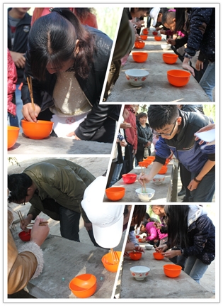 本次活动主要目的之一就是团队协作,所以“玩游戏赢食材,美食厨艺大比拼”特别应景儿。选号、分组、游戏规则说明,各小组推荐参赛选手,挽袖子,上场,预备,开始……..好一个漂亮流畅的进程动作,“碗中运珠”的游戏一开始就吸引了现场众多人的围观,欢笑声,喝彩声响成一片,参赛选手个个都不敢懈怠,双目圆睁,可是小小玻璃珠子就是调皮,它们不是不上筷子,就是跳到碗外边去了,甚至进了碗又神奇般地再次跳了出来。感叹声、欢笑声顿时响成一片。“不行,有人作弊,这颗珠子不能算”。评委桂娟的眼睛何其明亮,现场一次沸腾起来,欢乐也不能破坏游戏规则,经过紧张激烈的角逐,第一名为:第六组,成绩为26颗;第二名为:第二组,成绩为16颗;第三名为:第三组,成绩为12颗;第四名为: 第五组,成绩为11颗;第五名为:第四组,成绩为10颗;第六名为:第一组 ,成绩为6 颗。