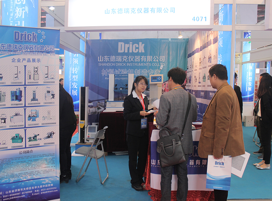 展会上,山东德瑞克用专业的品质和热情洋溢的服务态度迎接每一位到访的客商,集中向客人介绍并现场演示了山东德瑞克仪器有限公司在橡塑塑料应用行业的电子拉力试验机、摆锤冲击机、压缩试验仪等质量检测产品。大气简约的机器外观和流畅智能化的机器性能赢得现场众多客户的一致好评。